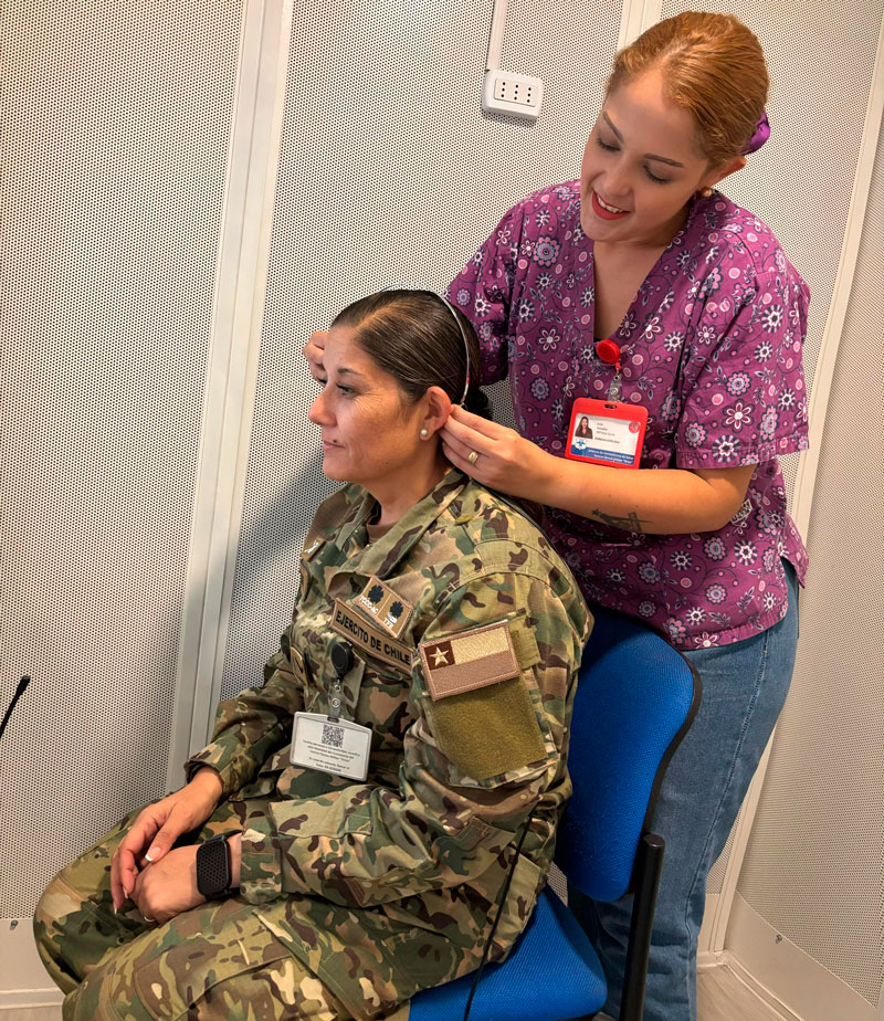 En el marco del fortalecimiento continuo de las prestaciones de apoyo diagnóstico, el Centro Clínico Militar “Arica” ha retomado la realización de audiometrías gracias a la habilitación de su cámara silente. Este procedimiento será llevado a cabo por profesionales fonoaudiólogos, tras un periodo prolongado en que la prestación estuvo suspendida debido a la limitada disponibilidad de especialistas en la ciudad.
