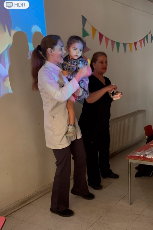 La intervención consistió en una obra de títeres especialmente diseñada para enseñar, de manera lúdica, la relevancia del cepillado diario y las visitas periódicas al dentista. Adicionalmente se entregaron muestras y stickers gracias a la participación de la marca Sensodyne.