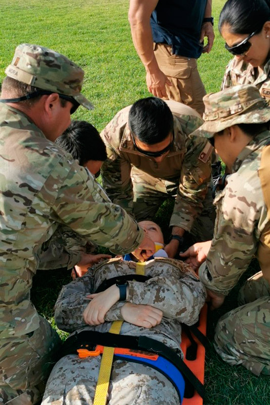 Posteriormente, los días 2 y 3 de diciembre, se llevó a cabo el curso Pre Hospital Trauma Care PHTC, intensivo en técnicas de manejo prehospitalario y trauma, donde se capacitaron 23 Enfermeros Militares, otorgando los conocimientos de perfeccionamiento en técnicas de restricción de movimiento bajo las directrices de los criterios canadienses NEXUS (National Emergency X-Radiography Utilization Study).