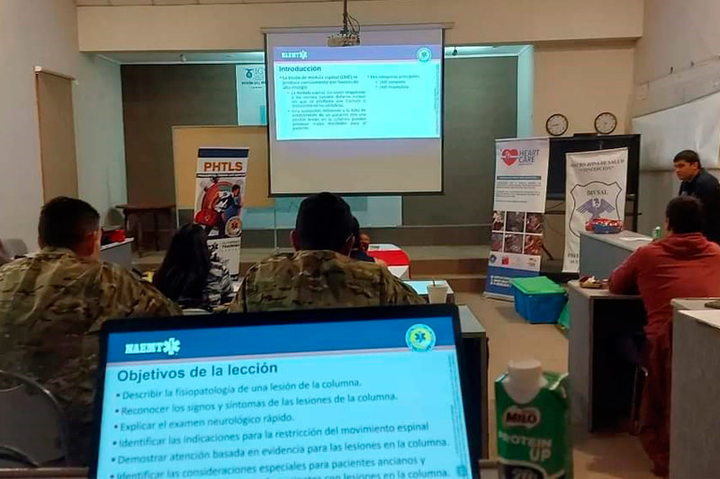 Durante los días 13 y 14 de abril, personal de dotación de la Enfermería Militar Avanzada “Talca”, IS perteneciente a la MZS “Concepción”, participó en calidad de invitado con beca en el curso de entrenamiento “Prehospital Trauma Life Support” (PHTLS), realizado en dependencias del Regimiento N.°16 “Talca” por la empresa HEART CARE.