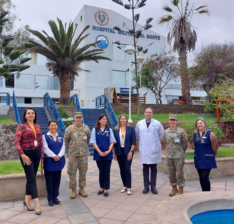 El jueves 25 de septiembre la señora del Comandante en Jefe de la Armada, Sra. Roxana Mery de Cabrera, junto con la señora del Comandante en Jefe de la I División de Ejército, Sra. Valeria Giubergia de Frávega, concurrieron al Hospital Militar del Norte para conocer la infraestructura y funcionamiento del principal recinto de salud militar del norte del país.