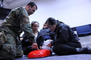 El curso impartido por el Suboficial Luis Alfaro G. del CG del COSALE y SG1 Miguel Armijo R, de la Jefatura de Sanidad Militar explicó a los jóvenes cómo realizar una reanimación básica cardiopulmonar con ejercicios prácticos guiados, a través de la utilización de un maniquí de entrenamiento.